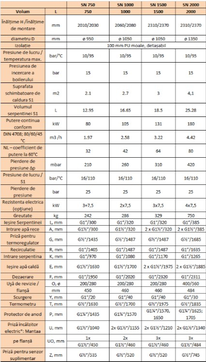Sunsystem SN 1000 litri este un boiler indirect, dotat cu o serpentina, se utilizeaza pentru preparare apa calda menajera (ACM). Echipamentul are o capacitate de 1000 de litri, este dotat cu schimbator de caldura (tip serpentina) incorporat care poate fi conectat la un sistem solar sau un cazan. Optional se poate monta un element electric de incalzire.