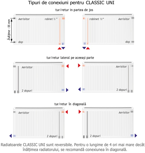 • Radiator reversibil