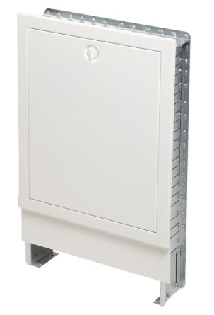 Carcasă colector încastrat Stable Comfort realizat din tablă de oțel galvanizată cu grosimea de 1 mm, cu zonă de instalare electrică înălțată în partea superioară a carcasei, inclusiv șină de tip top-hat pentru unitățile de comandă TECEfloor. Panoul din spate cu 2 șine de fixare detașabile, inclusiv șuruburi de fixare pentru distribuitorul de încălzire, panouri superioare și laterale cu deschideri pre-perforate pentru țevile de alimentare, inclusiv placa de protecție pentru șapă, ușă și ramă din tablă de oțel galvanizat, vopsit în câmp electrostatic în alb (RAL 9016), adâncime reglabilă 110-150 mm, înălțime de instalare 780-900 mm.