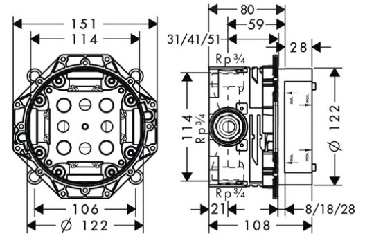 Corpul incastrat 01800180 IBOX de la Hansgrohe, este universal si reprezinta baza necesara instalarii mai multor colectii de baterii pentru baie incastrate Hansgrohe.
