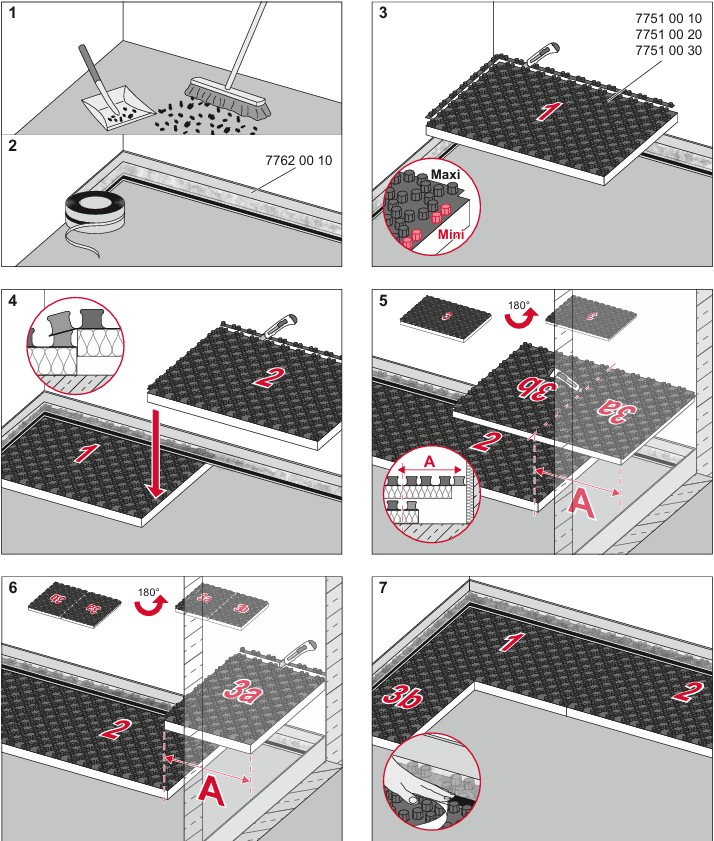 Placa cu nuturi TECEfloor SLQ preizolata, 30 mm grosime pentru teava Ø14-17mm,     9,6 mp/cutie