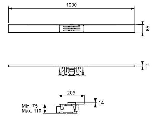 • Înălțimea minimă de montaj 75 mm (de la marginea inferioară a sifonului până la marginea superioară a șapei)
