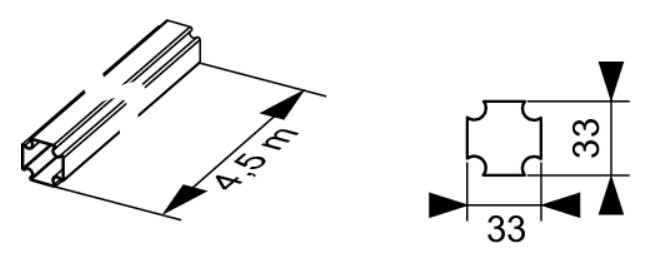 Țeavă profilată TECEprofil 4 500 x 33 x 33 mm, oțel galvanizat.
