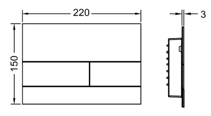 Clapetă de acționare pentru rezervoare TECE, pentru acționare frontală sau de sus. Clapetă de acționare metalică, extra-plată, cu două butoane de acționare cu arc, basculante. Incl. tije de acționare, materiale de montaj și unealtă pentru demontat. Compatibil cu ușa de vizitare pentru tablete de curățare.